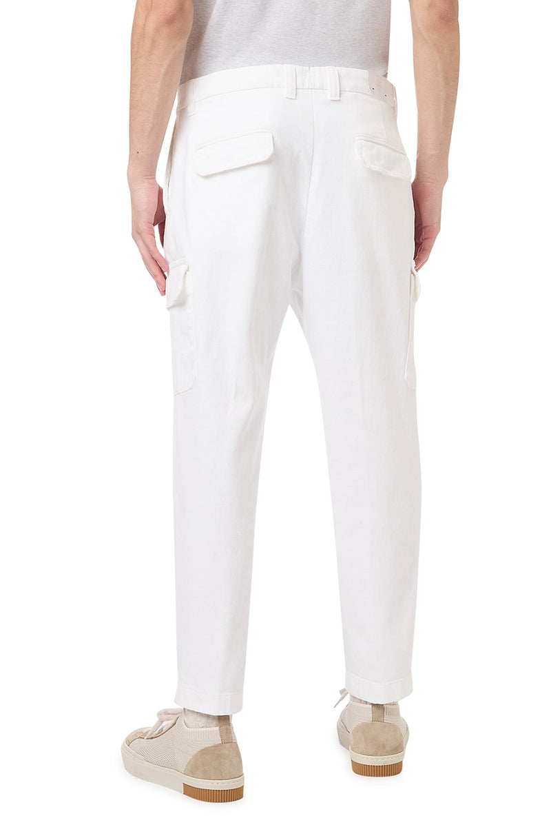 Cargo trousers with large pockets in bi-stretch wool flannel, with a relaxed fit. The garment is further elevated with intricate sartorial stitches.